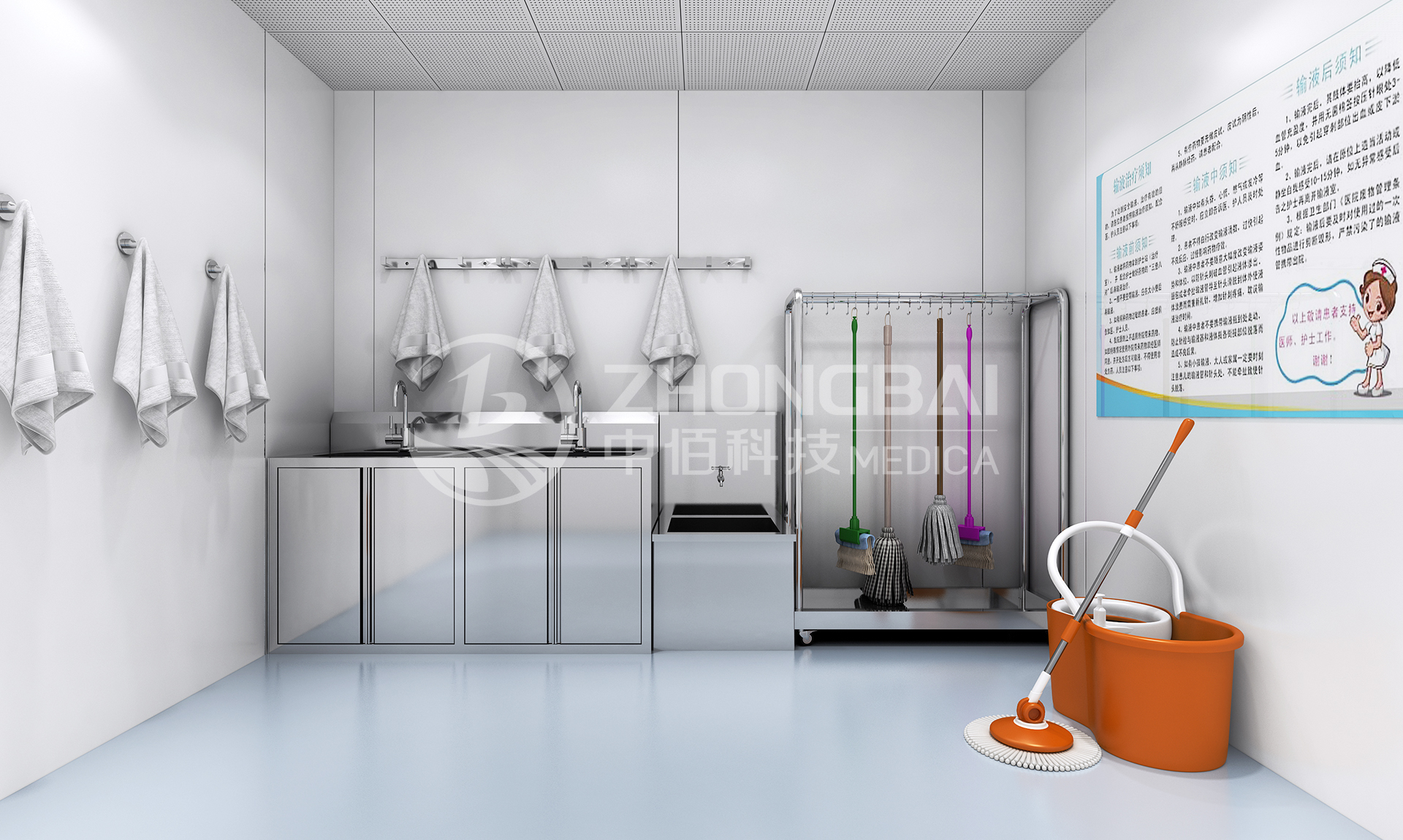 處置室一般在治療室近處,主要為醫(yī)護(hù)人員實施皮膚準(zhǔn)備及清潔灌腸等操作,臨時存放治療產(chǎn)生的醫(yī)療廢物及需要浸泡消費的醫(yī)療物品的專用工作室。